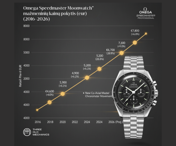 Kaip kito Omega Speedmaster "Moonwatch" kaina